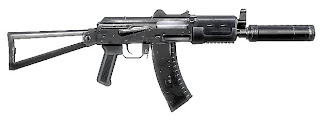 El AKS 74U, basado en el AK-47 con un cañón más corto y más ligero de construcción, es el arma principal de las fuerzas especiales rusas. Fue ofrecido en BF2 y dos juegos de Bad Company.